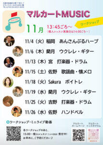 今月も、ワークショップやミニライブの音楽イベント、各地でお世話になります!